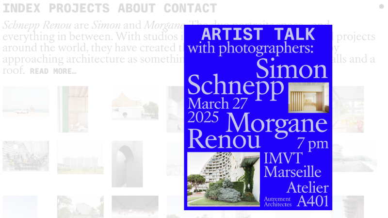 He is ½ of the artist duo Schnepp Renou, known for their recognizable visual language that transcends the boundaries of traditional architectural photography, with studios in Berlin, Marseille and Paris. He is also part of Neue Langeweile, a collective that focuses on exploring human perception and the experience of place rather than trying to depict reality.